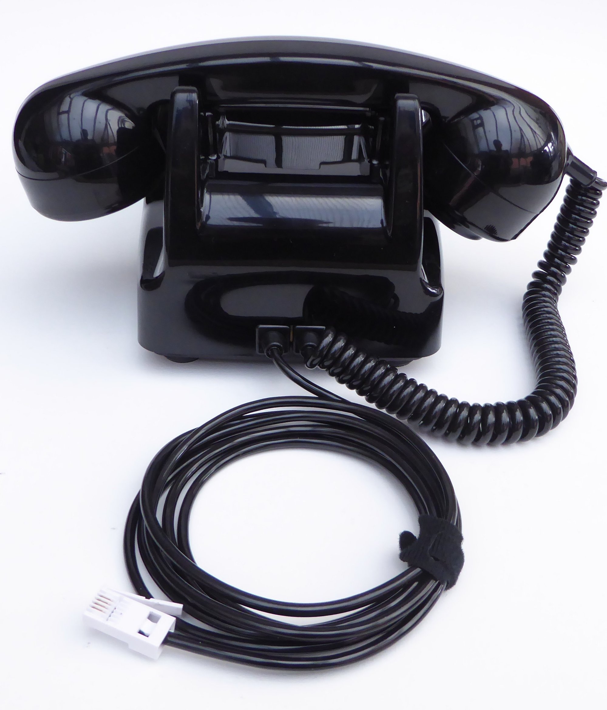 First released in 1959, the 706 was the GPO's first 'modern' telephone with a choice of seven colours and the modern helical plastic handset cord. A true classic, this telephone is recased in Black, VoIP ready and in first class working order - ready to plug in and use. Of course it has the quintessential twin bell 'ring ring', a No.21 numeric dial and an electret transmitter unit for high quality speech. It also comes complete with our own reproduction paper furniture on which we can print your exchange and telephone number.