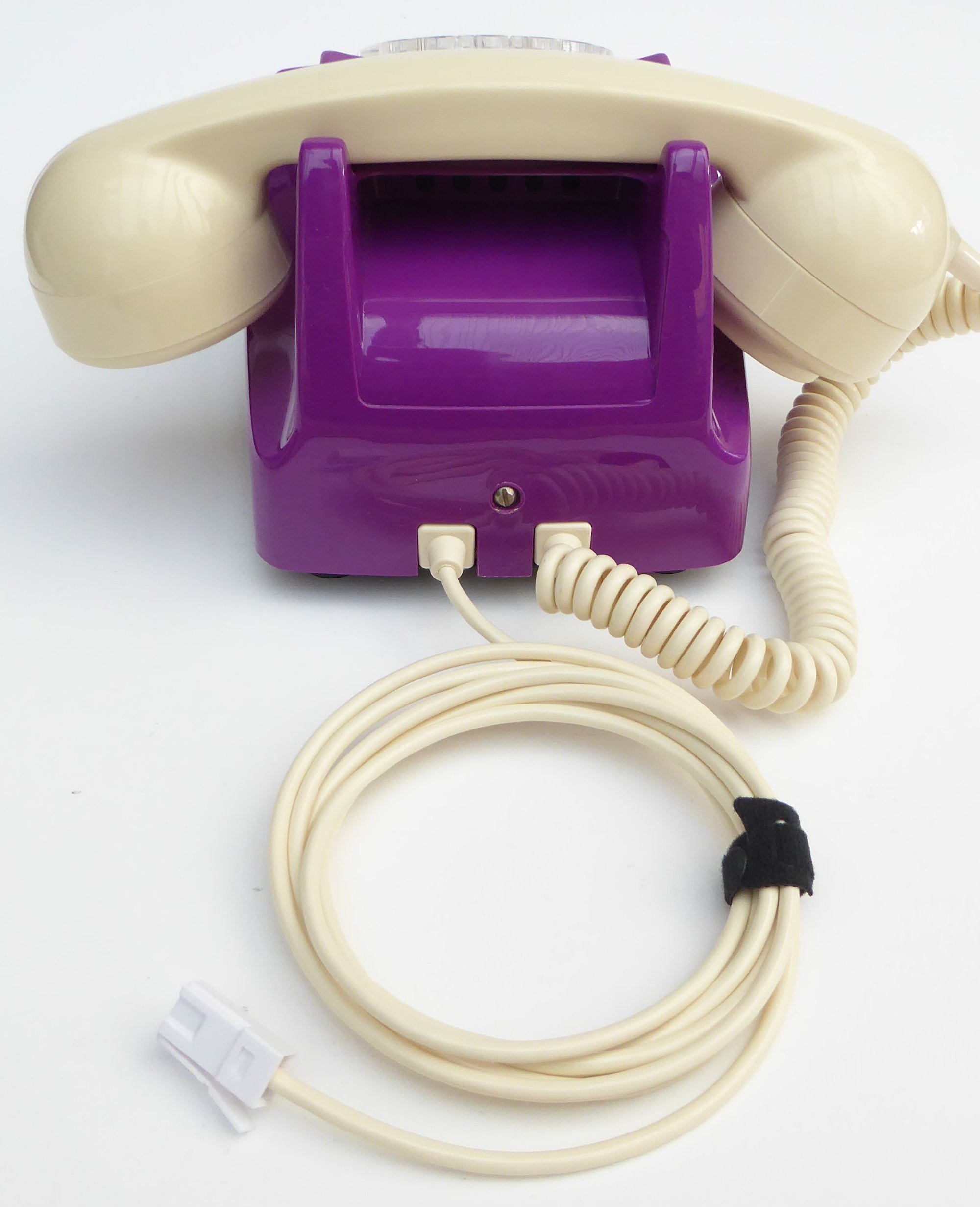 A classic British 746 series telephone recased in a contemporary Purple and Ivory, in first class working order and ready to plug in and use. A modern twist on an old classic. Of course it has the quintessential twin bell 'ring ring', a No.21 numeric dial and a replacement transmitter unit for high quality speech. It also comes complete with our own reproduction paper furniture on which we can print your exchange and telephone number.